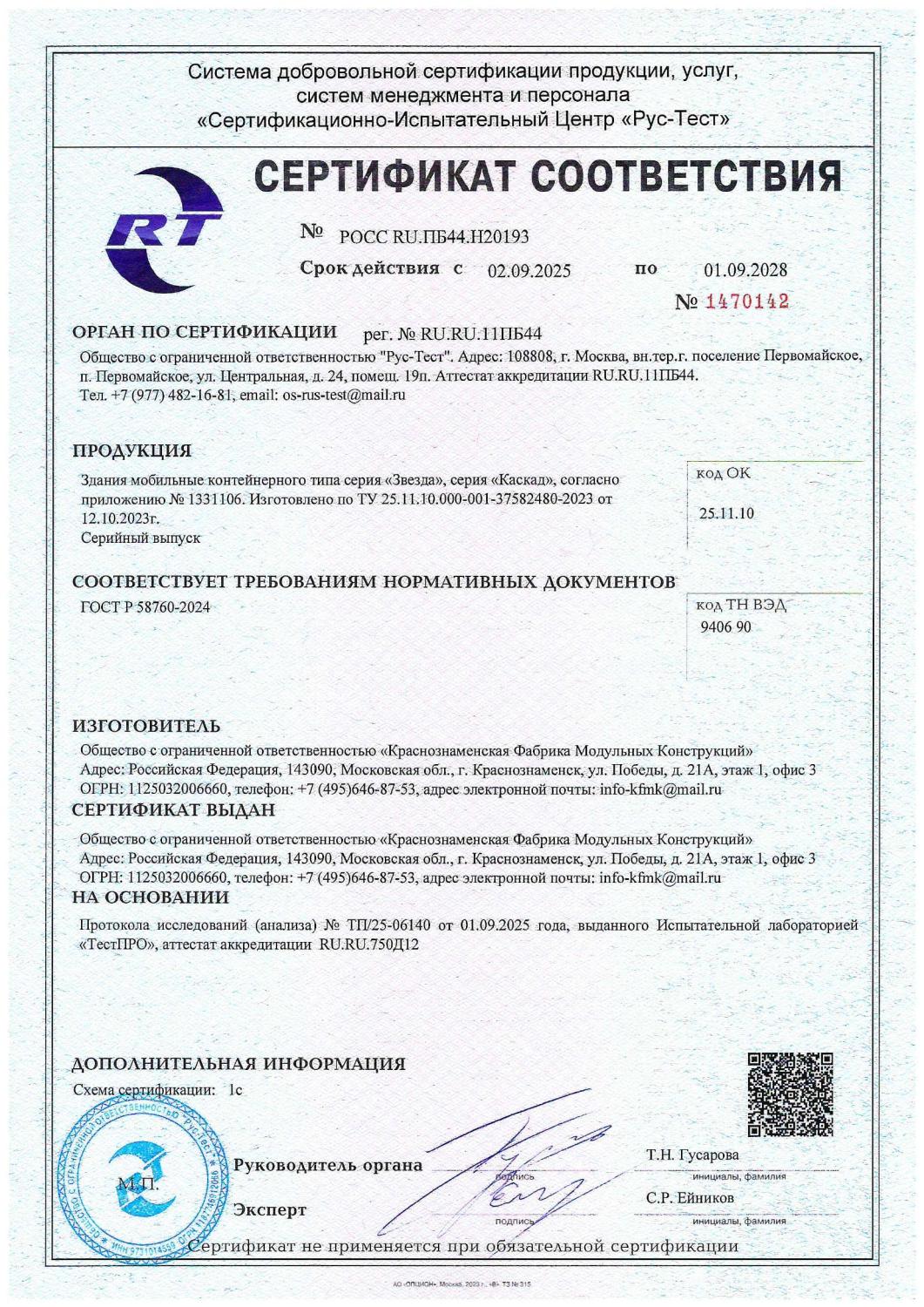 Гарантийный срок на модульное здание и выполненные работы составляет 12 месяцев с даты подписания сторонами акта приема-передачи выполненных работ и(или) УПД.